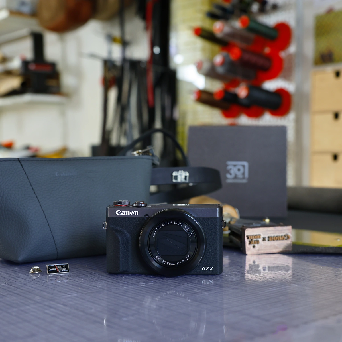 Ter ere van het jubileum werkt Canon samen met Monsak. Daarmee krijg je de kans om deel te nemen aan een exclusieve workshop waarin je je eigen crossbody cameratas ontwerpt. De tassen worden gemaakt van ‘gered leer’, waardoor elk ontwerp uniek is en een eigen verhaal heeft.