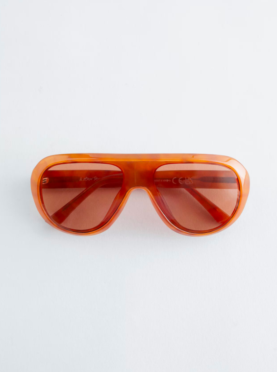 Tot slot: de zonnebril met oranje glazen. Als we naar de weersvoorspellingen kijken, kun je ‘m goed gebruiken #wishfulthinking.
